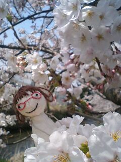 家の前の桜並木 きれいに咲いてます ほぼ満開ですなァ~ めがねchanと撮ったらめちゃかわゆくなりましたっ